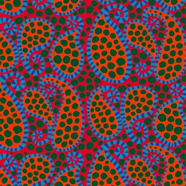 PWBM090.Red Paisley Dot by Kaffe Fassett Collective. Kaffe Fassett Collective for FreeSpirit presents this new collection. Featuring re-imagined designs by Kaffe Fassett & new designs from Brandon Mably. This collection features an array of bright bold flowers, including rhododendrons, hyacinths, and floating hibiscus flowers.
