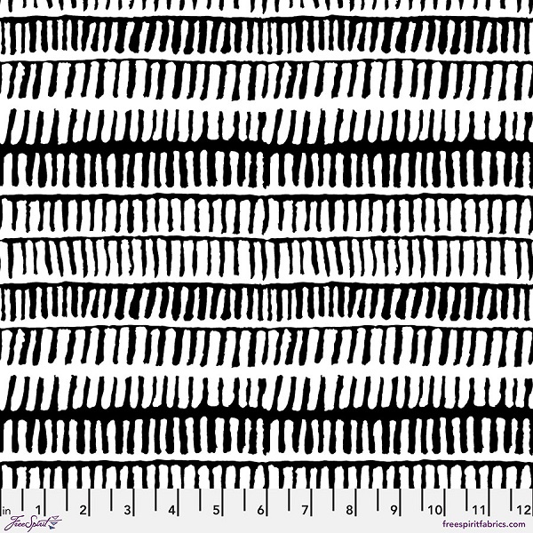 PWBM103.Zebra Zipper Stripe: Brandon Mably for Kaffe Fassett Collective is a design of stripes of zipper like patterns in black and white.