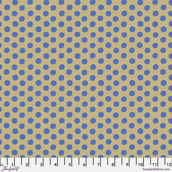 PWGP070.Buff Spot: Kaffe Fassett is a polka-dot print in beige and blue.