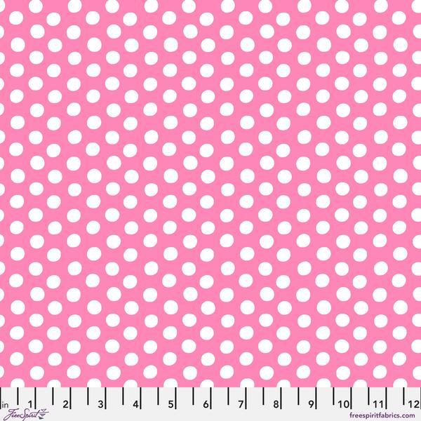 PWGP070.Pink Spot, Kaffe Fassett for Kaffe Fassett Collective is a classic polka dot design in white and light pink.