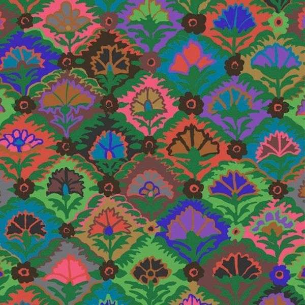 PWGP202.Dark Step Flower by Kaffe Fassett is a beautiful repeating design, featuring flowers framed in the shape of diamonds. Ideal for patchwork and quilting projects.