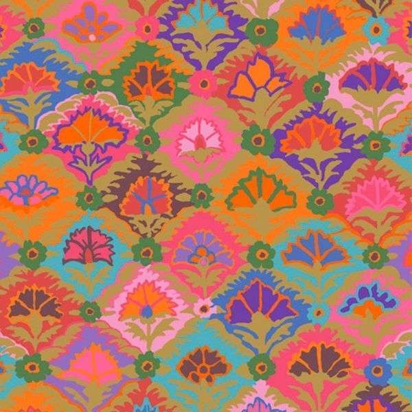 This collection features an array of bright bold flowers and designs, including Paisley Flower, petals and garden party florals. For several years, Kaffe was the sole artist, hand-painting his own designs until he brought in his friends, Philip Jacobs and Brandon Mably. Philip’s detailed large scale florals derived from historic fabrics and Brandon’s whimsical modern designs were added to Kaffe’s eclectic ones. Together they became the Kaffe Fassett Collective.