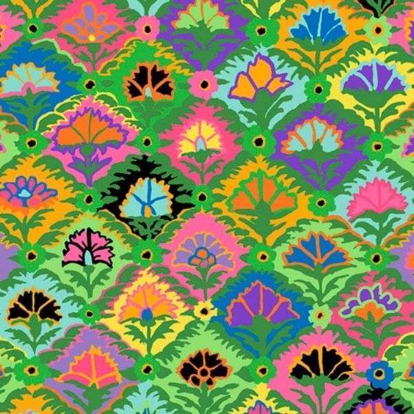 PWGP202.Multi Step Flower by Kaffe Fassett is a beautiful repeating design, featuring flowers framed in the shape of diamonds. Ideal for patchwork and quilting projects.