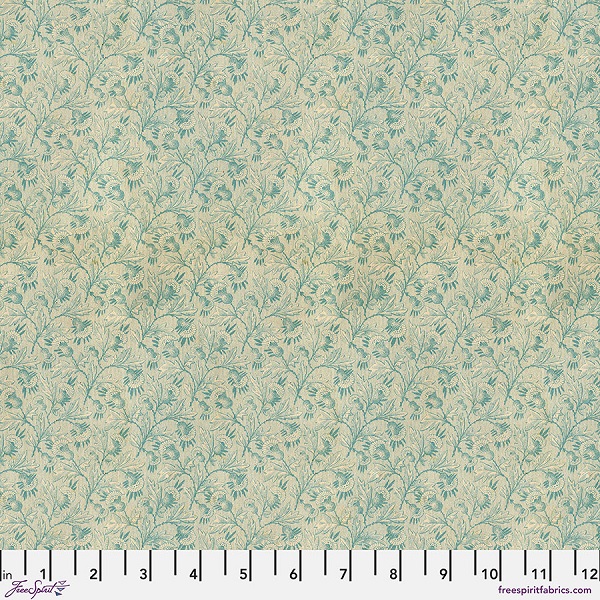 PWTH278.Teal Tiny Print, Palette Teal by Tim Holtz is a design of small teal flowers on a striped teal and cream background.