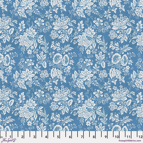 PWTH287.Blue Tapestry, Palette Blue by Tim Holtz is a classic floral design with white flowers on a blue background.