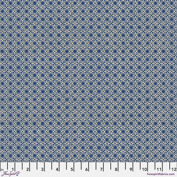PWTH298.Indigo Tiny Print, Palette Indigo by Tim Holtz is a geometric design of tiny blue circles on a cream background.