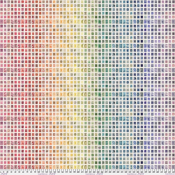 PWTH321.Multi Stamps, Palette Multi by Tim Holtz is a design of vintage multi coloured stamps on a cream background.