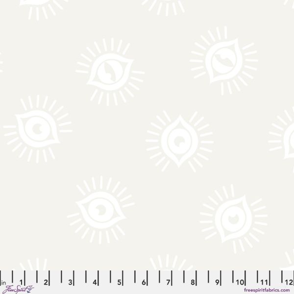 PWTP291.Pearl In Plain Sight, Legendary by Tula Pink features a beautiful print of white eyes with voluminous lashes on a cream background.