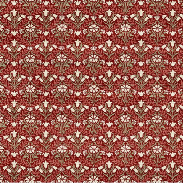 PWWM021.RED The Cotswold Holiday Collection, Bellflowers Red, Morris & Co. A design with bellflowers, all featured on a red background.