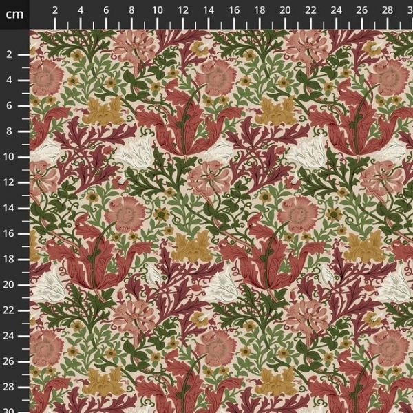 PWWM022.ROSE Compton, Suffolk Holiday Collection by Morris & Co. features a gorgeous pattern of pink, white, and yellow flowers with entwining leaves. A beautiful collection ideal for your craft projects, quilting, patchwork and home decor.