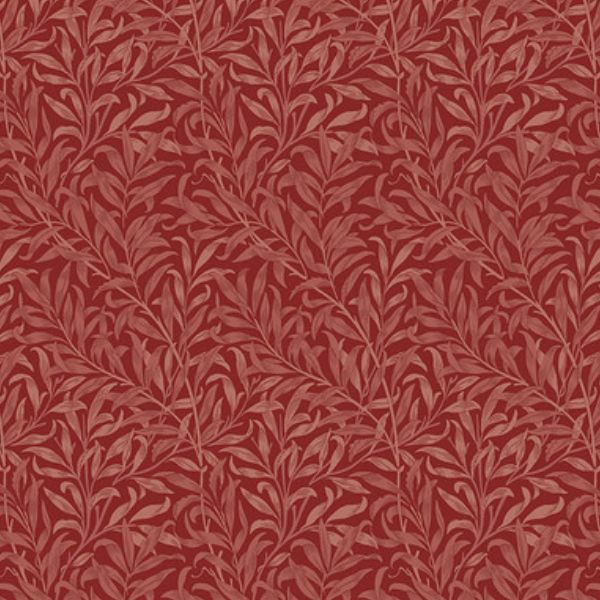 PWWM030.RED The Cotswold Holiday Collection, Willow Boughs Red, Morris & Co. A leafy design featured on a red background.