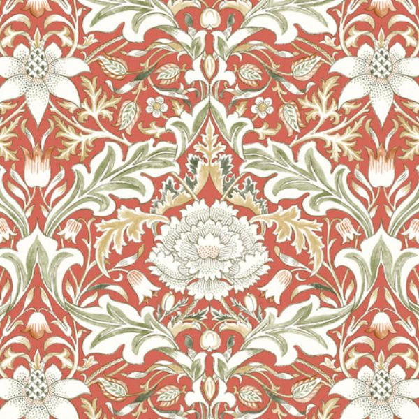PWWM082.RED Severne, Leicester fabric collection. An elegant damask of acanthus leaves framing a central flowerhead. Ideal for patchwork and quilting.