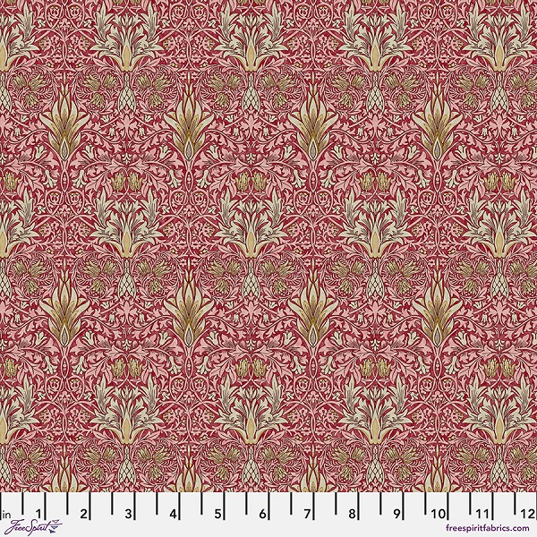 PWWM133.Thornedrose SM Snakeshead, The Oxford Holiday Collection by Morris & Co. is a design of intricate snakeshead flowers on a red background.