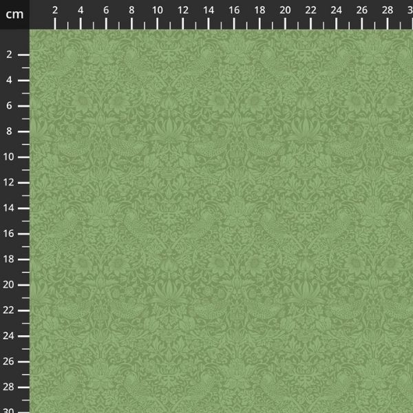 PWWM153.HERBALL Tonal Strawberry Thief, The Trellis Palette by Morris & Co features the iconic strawberry thief print in a soft green tonal palette.