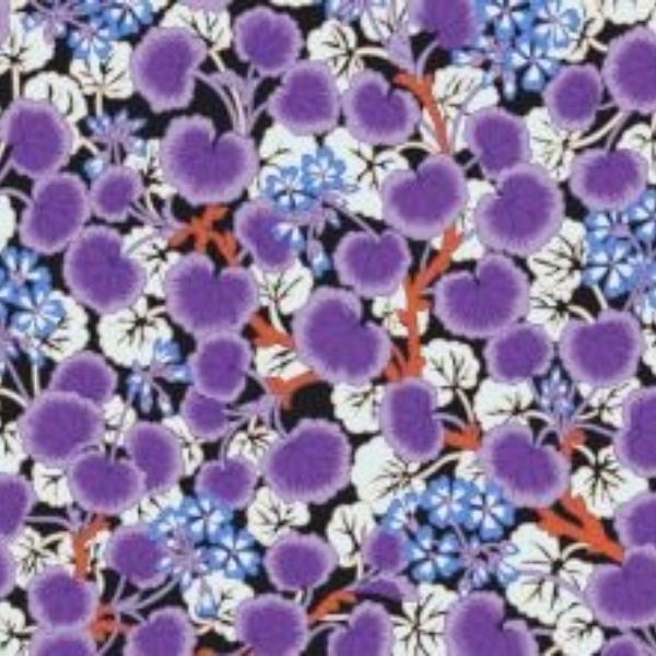QBPJ002.Contrast Climbing Geraniums, 108″ Quilt Backing designed by Philip Jacobs for the Kaffe Fassett Collective. This backing fabric features bold flowers on a black background. This collection features beautiful floral prints, fun new patterns and vibrant colours.