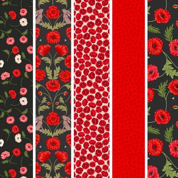 Red Poppies Fat Quarter Pack (5pcs) features five beautiful designs by Lewis & Irene