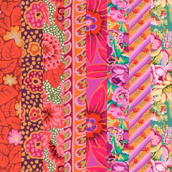 This curated fat quarter pack offers a rich tapestry of colour and design, perfect for quilters seeking to infuse their projects with the timeless elegance of the Kaffe Fassett Collective.