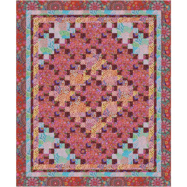 Round and Round Quilt Kit Warm, Kaffe Fassett Cotton Lawn includes all fabrics required for the quilt top, binding, and the pattern.