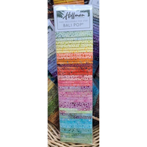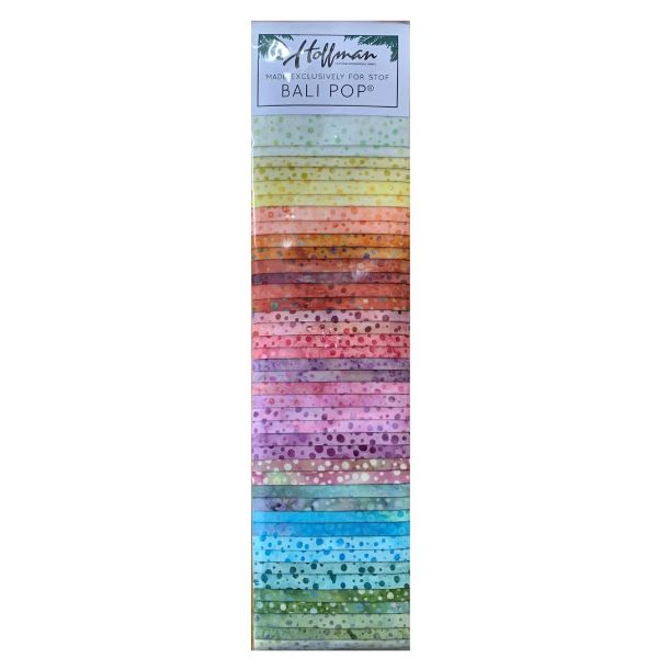 S885BP-135 Hoffman Bali Pop Strip, Pastel, Hoffman’s version of the Jelly Roll, featuring a selection of 2½” strips of beautiful Bali batik fabrics.