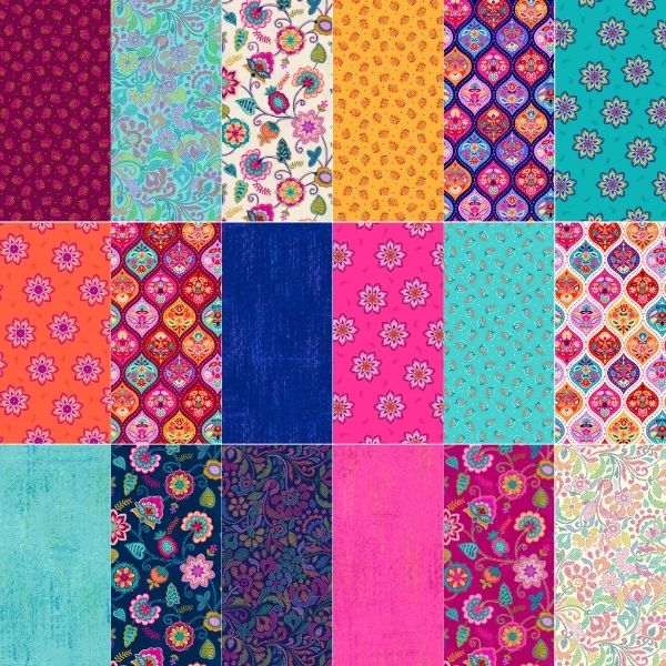 Sambramha Fat Quarter Pack, Sambramha by John Scott features all 18 designs from this bright floral collection.