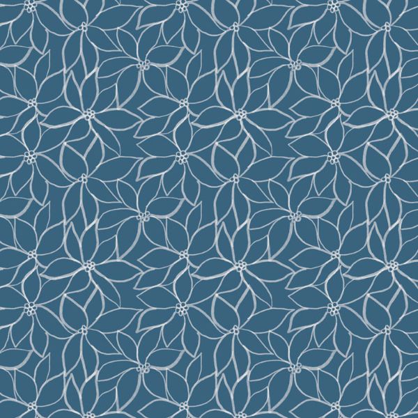 SH13 Linear Flower Blue, Hajime by Stuart Hillard for Lewis & Irene is a design of flowers outlined in cream on a blue background.