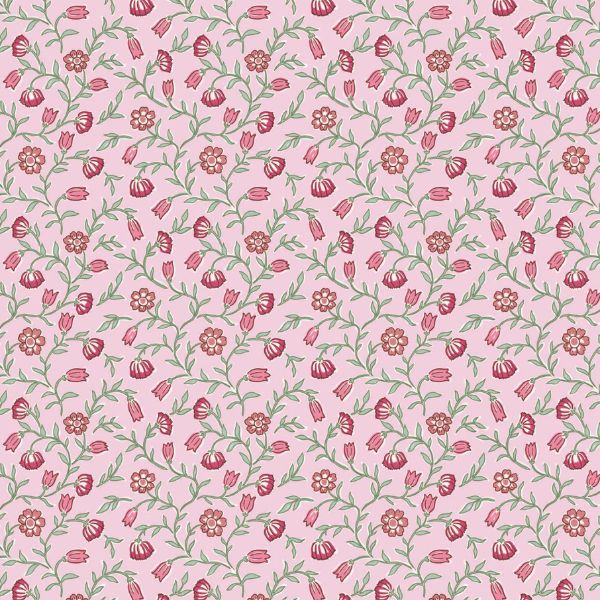 SH21B Climbing Flowers Pink, Indian Summer by Stuart Hillard features delicate pink and red flowers on a pink background.