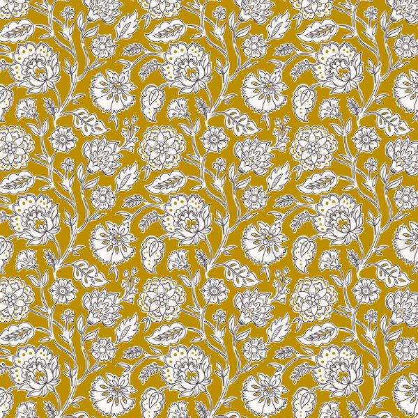 SH23A Indian Summer Gold Floral, Indian Summer by Stuart Hillard is a design of cream flowers on a gold background.