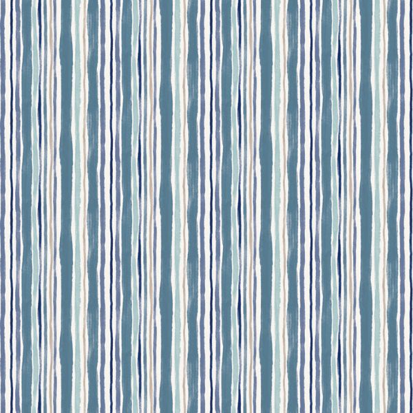 SH9 Multi Stripe Pale Blues, Hajime by Stuart Hillard for Lewis & Irene is a design of painted stripes in different shades of blue on a white background.