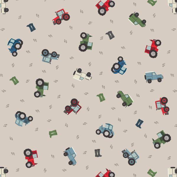 SM67.1 Farm Vehicles and Wellies Cream by Lewis and Irene, is a fun print featuring tractors in different colours, jeeps, and wellies. Perfectly placed for fussy cutting and useful in all sorts of sewing projects. Ideal for children’s quilts or playmats.