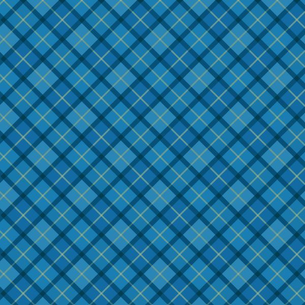 SM74.1 Small Things…Celtic Inspired, Blue Check, Lewis & Irene. A traditional blue and green check pattern featured on a blue background.