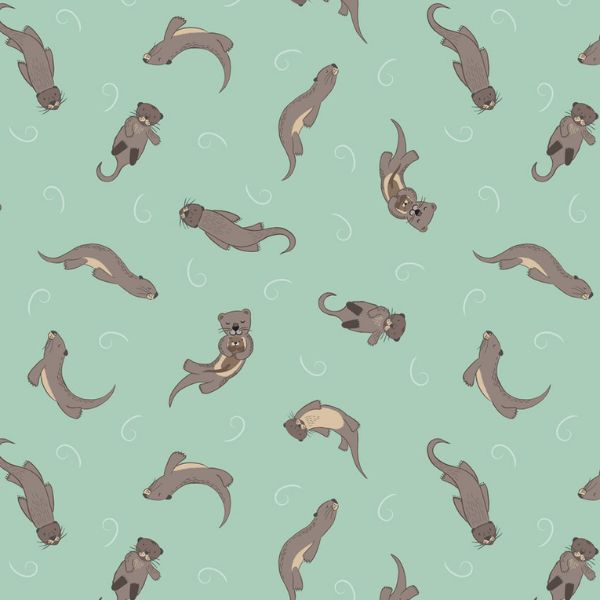 SM78.2 Otters on Water Green, Small Things…Rivers & Creeks by Lewis & Irene features swimming otters on a green background.