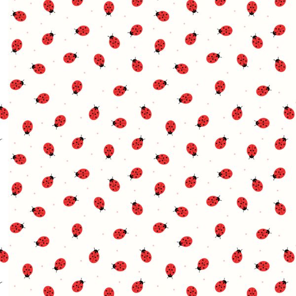 SM82 Ladybirds, Small Things…Country Garden by Lewis & Irene features red ladybirds on a cream background.