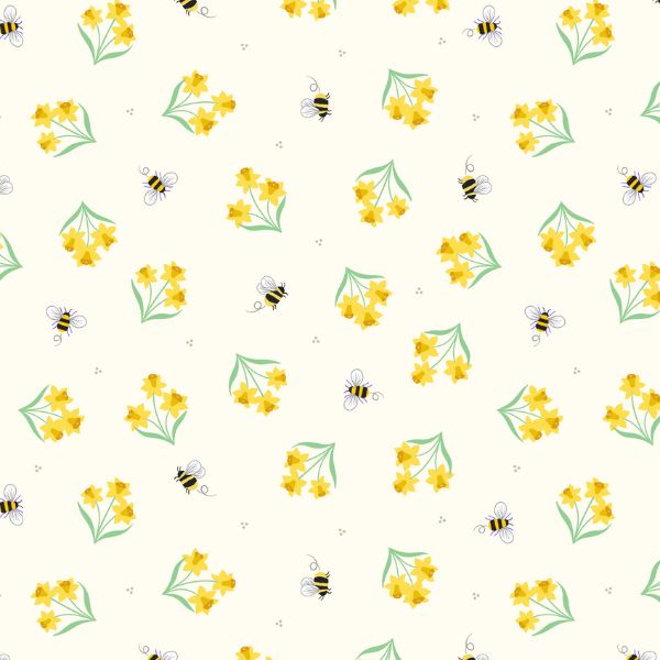 SM87 Bees and Daffodils, Small Things…Country Garden by Lewis & Irene features yellow daffodils and bees on a cream background.