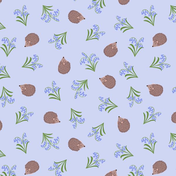 SM90 Hedgehogs and Bluebells, Small Things…Country Garden by Lewis & Irene features hedgehogs and bluebells on a blue background.