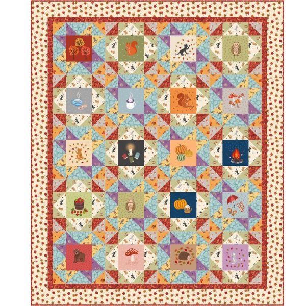 Small Things… Snuggle Season Quilt Kit contains the fabrics required to complete the quilt top and binding. In addition, you will need wadding and backing fabric which is not included in the kit.