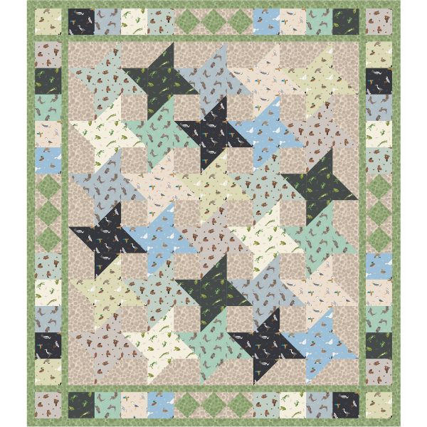 Small Things…Rivers & Creeks Quilt Kit 2 features fabrics from the Small Things…Rivers & Creeks collection by Lewis & Irene. The main colours are blue, green and cream