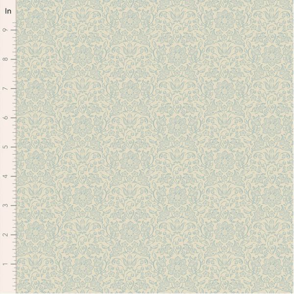 TD100156 Lila Light Blue is a beautiful floral blender designed to compliment the Songbird collection. The design features a pattern of delicate blue flowers and leaves on a cream background.