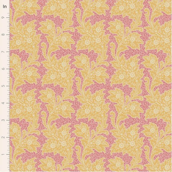 TD100160 Stella Yellow, Songbird by Tilda is a beautiful floral blender designed to compliment the Songbird collection. The design features a pattern of yellow flowers and leaves on a red background.