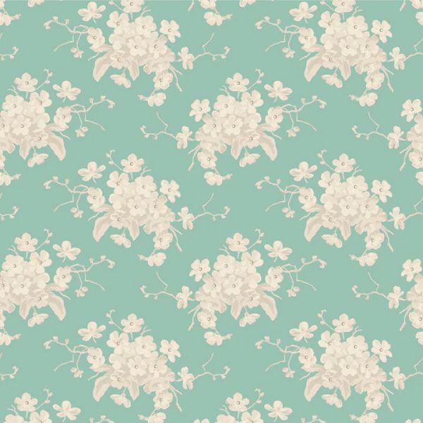 TD100581 White Flower Teal, Sunday Brunch by Tilda features bunches of small white flowers on a teal background.