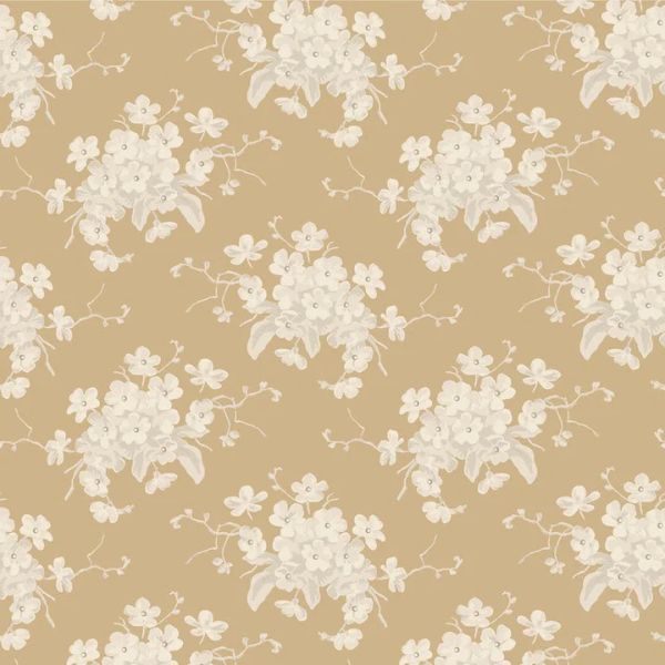 TD100600 White Flower Sand, Sunday Brunch by Tilda features bunches of small white flowers on a brown background.