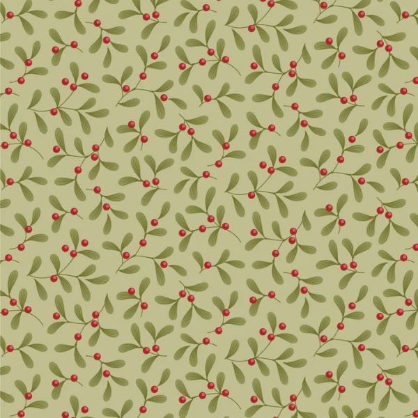 TD100633 Mistletoe Pistachio, Merry Little Christmas by Tilda is a design of delicate green mistletoe branches on a pale green background.