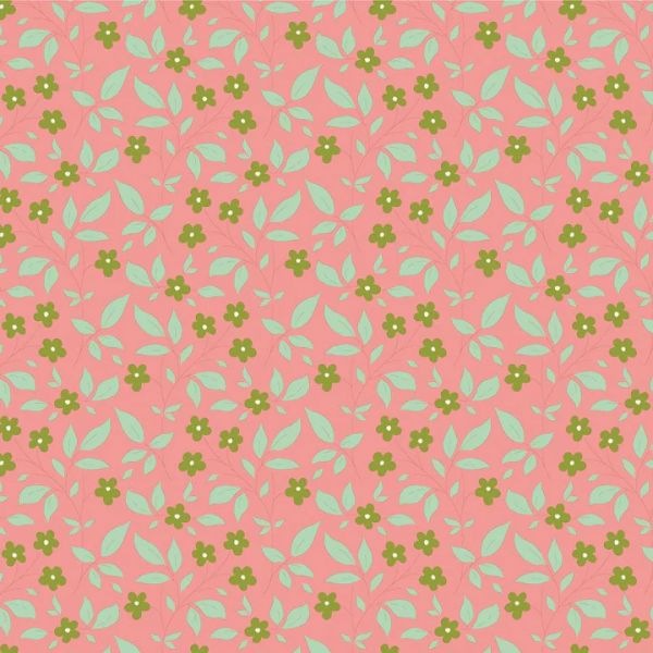 TD110121 Tipsy Pink, Sunday Brunch by Tilda is a design of green flowers and leaves on a pink background.