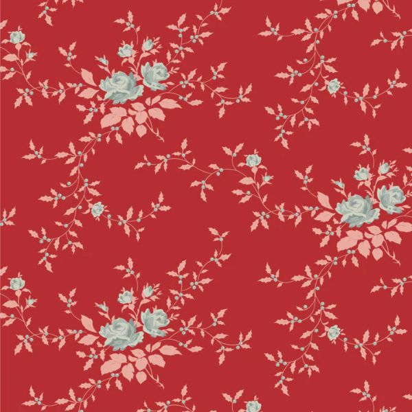 TD110139 Noel Red, Merry Little Christmas by Tilda is a design of pretty blue flowers on a red background.