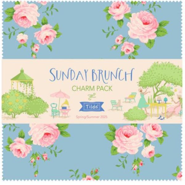 TD300229 Sunday Brunch Charm Pack by Tilda – This is a pre cut fabric charm pack containing 40 x 5″ squares, 2 each of the main 20 designs from the collection.