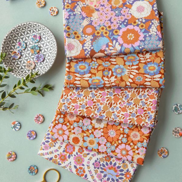 Step into a dreamy blend of nostalgia and artistry with the Wallflower fabric collection – an ornamental, 100% cotton fabric range inspired by the vibrant design styles of the 1960s and 70s. Designed with a romantic, retro twist, Wallflower combines vintage floral motifs with heartfelt storytelling to bring your quilting, sewing, and crafting projects to life.