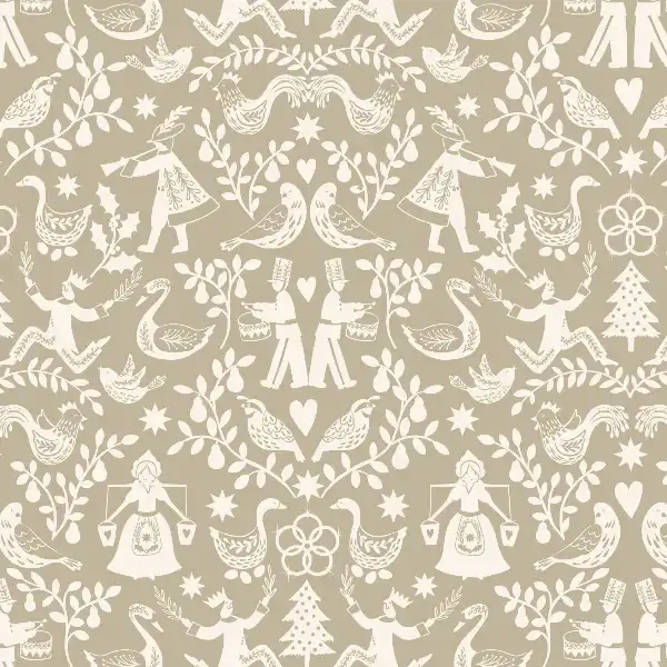 C80.1 12 Days of Christmas Mirrored on Natural: The 12 Days of Christmas: Lewis & Irene