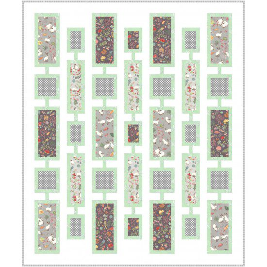 The Evening Quilt Pattern, featuring fabrics from the collection, In the Meadow. In the Meadow features rabbits playing in the meadow!