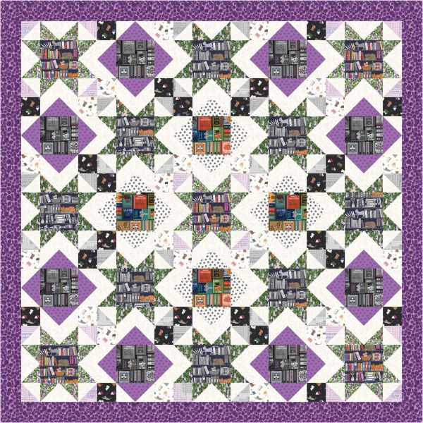 The Purrfect Book Club Quilt 1, by Lewis & Irene features fabrics from the Purrfect Book Club collection by Lewis & Irene. A quilt that tells a story stitched in soft purples, neutrals, and gentle greens where books, cats, and comfort come together in perfect harmony. This quilt captures the peaceful stillness of a quiet afternoon spent wrapped in warmth, a beloved book in hand, and a cat nearby