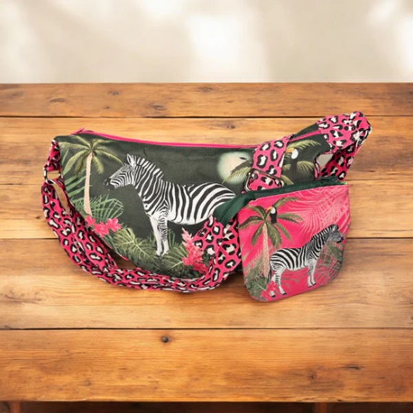 The Sling Bag Set is so useful as its curved shape allows it to sit neatly under your arm with an adjustable shoulder strap making it easy to carry. It’s a surprisingly roomy bag with an internal pocket, and comes with a cute matching Curvy Purse which sits neatly inside and keeps all your little items safe.