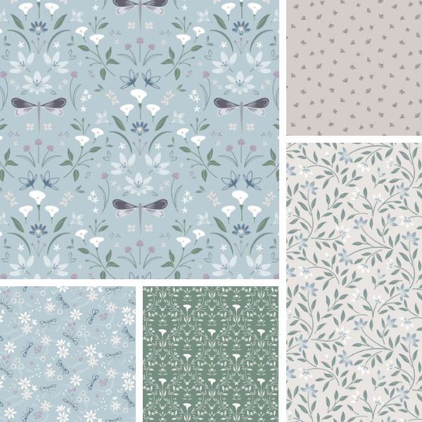 The Water Gardens Mids Fat Quarter Pack (5 pcs), Cassandra Connolly for Lewis & Irene is a collection of tranquil and delicate designs.